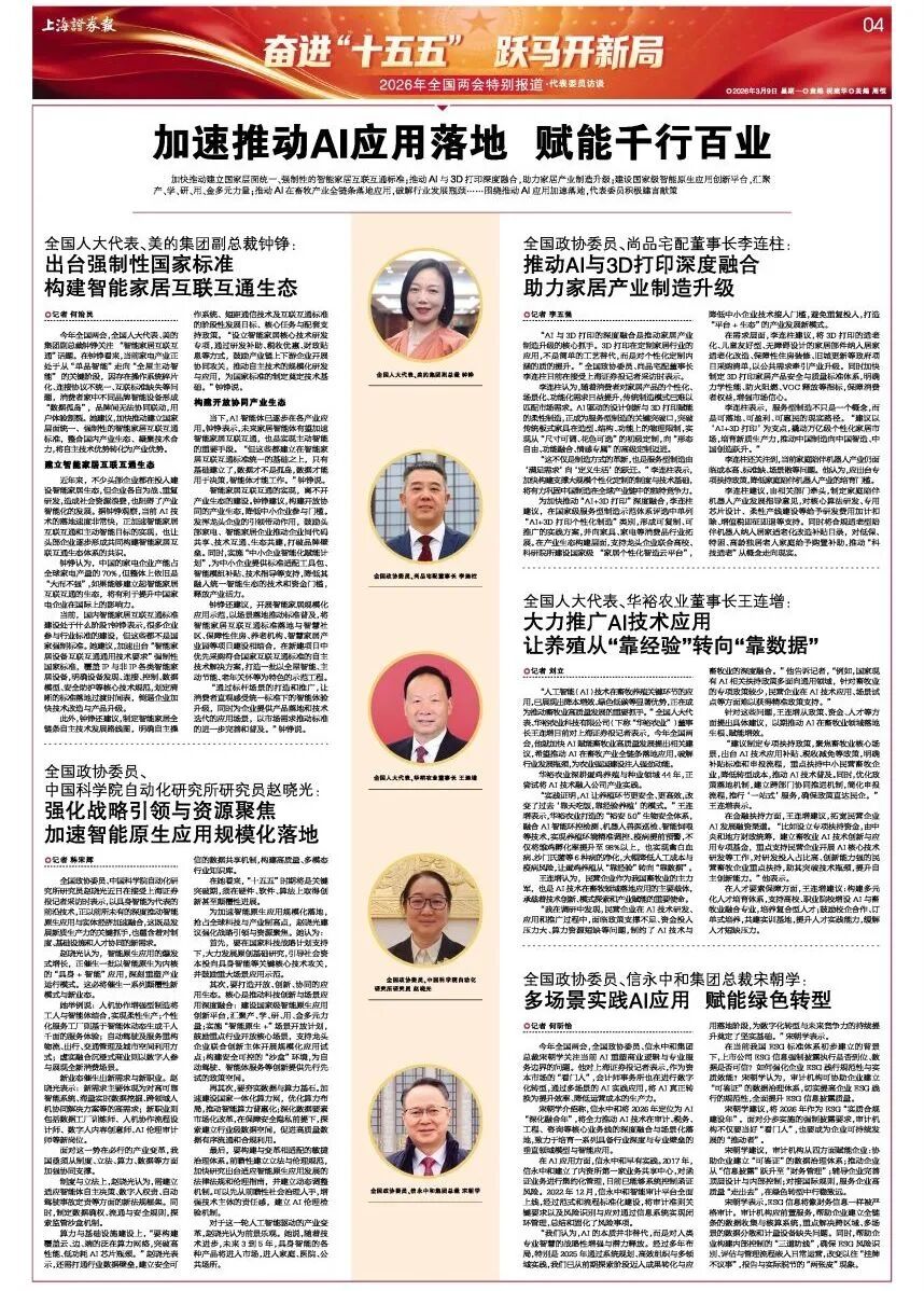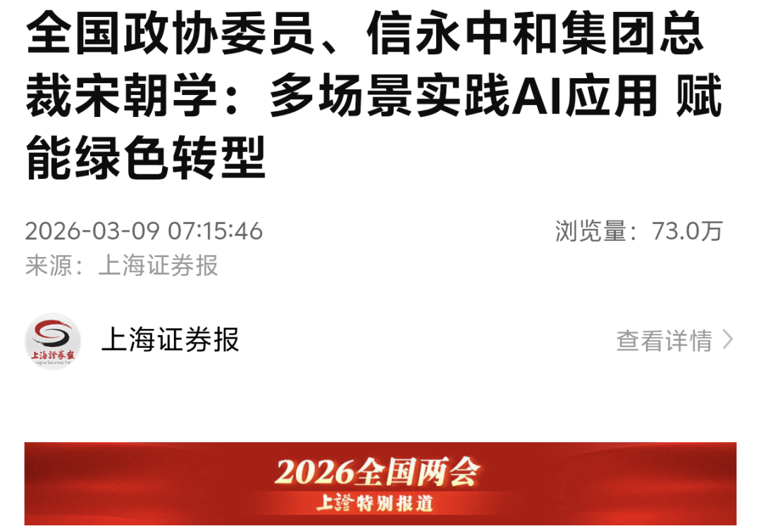 上海证券报丨全国政协委员、信永中和集团总裁宋朝学:多场景实践AI应用 赋能绿色转型